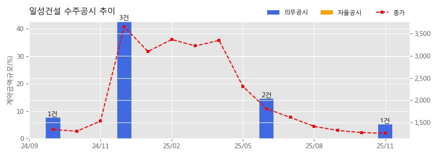 일성건설 수주공시 - 단일판매ㆍ공급계약 체결 261.5억원 (매출액대비 5.22 %)