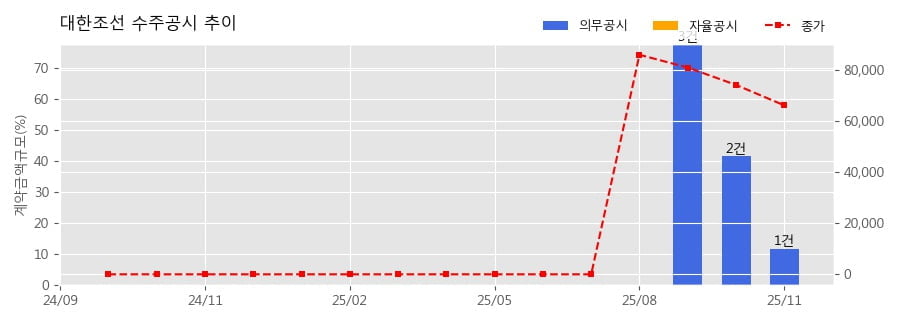 대한조선 수주공시 - 원유운반선(157,000 DWT) 1척 1,274억원 (매출액대비 11.85 %)