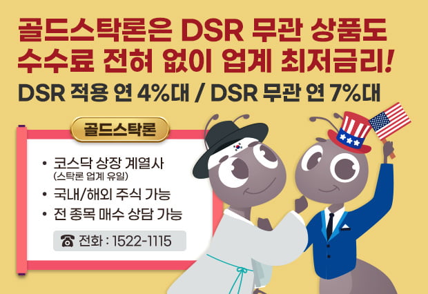 DSR적용 연 4%대 / DSR무관 연 7%대 업계 최저금리 스탁론!