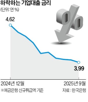 은행권 '생산적 금융' 경쟁에…기업대출 금리 年 3%대로 뚝