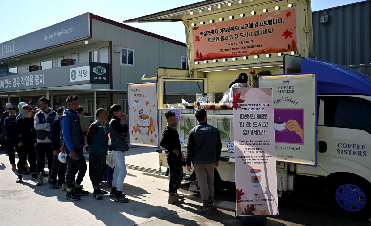 '중앙공원 롯데캐슬 시그니처' 입예협, 롯데건설 근로자들에게 커피차 응원