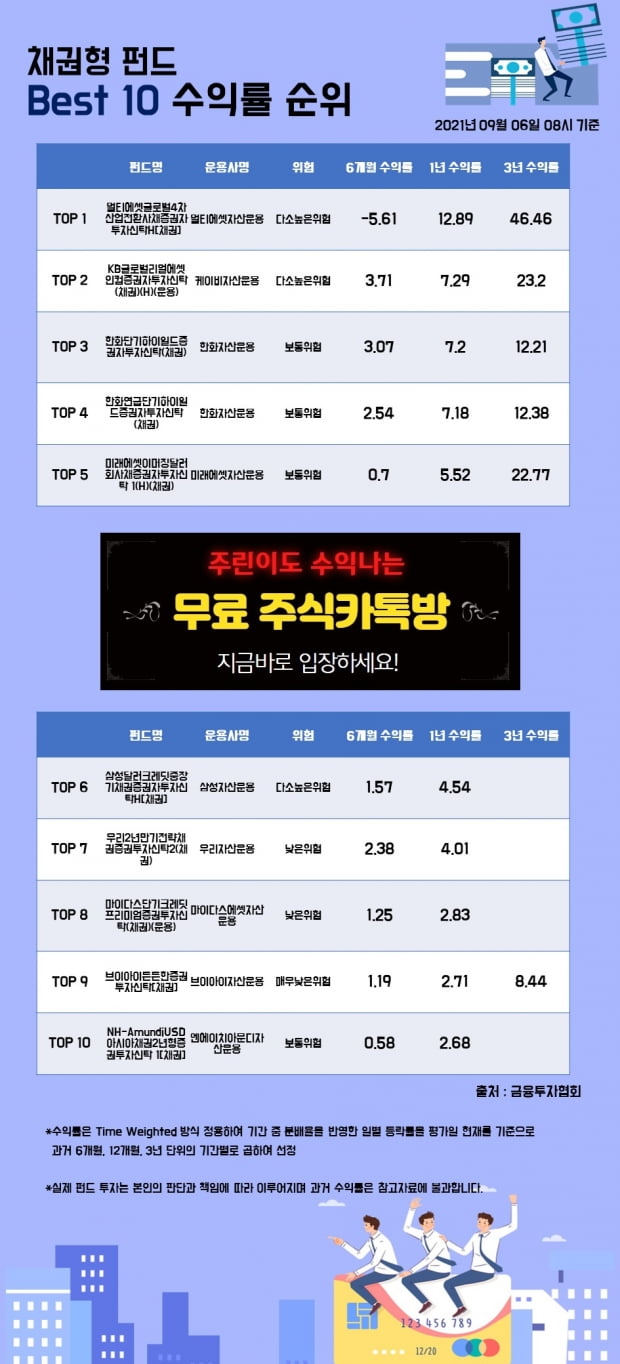 [한경인포] 채권형 펀드 Best 10 수익률 순위