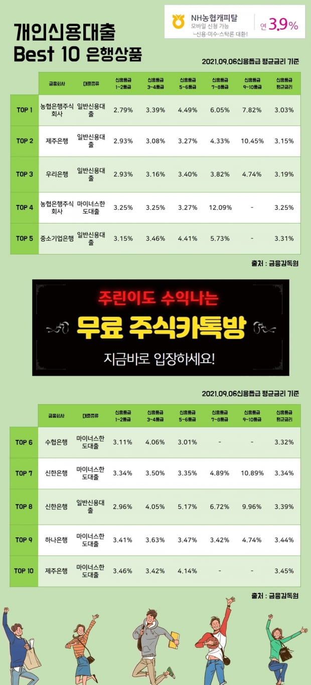 6일개인신용대출 이자율 Best 10 상품