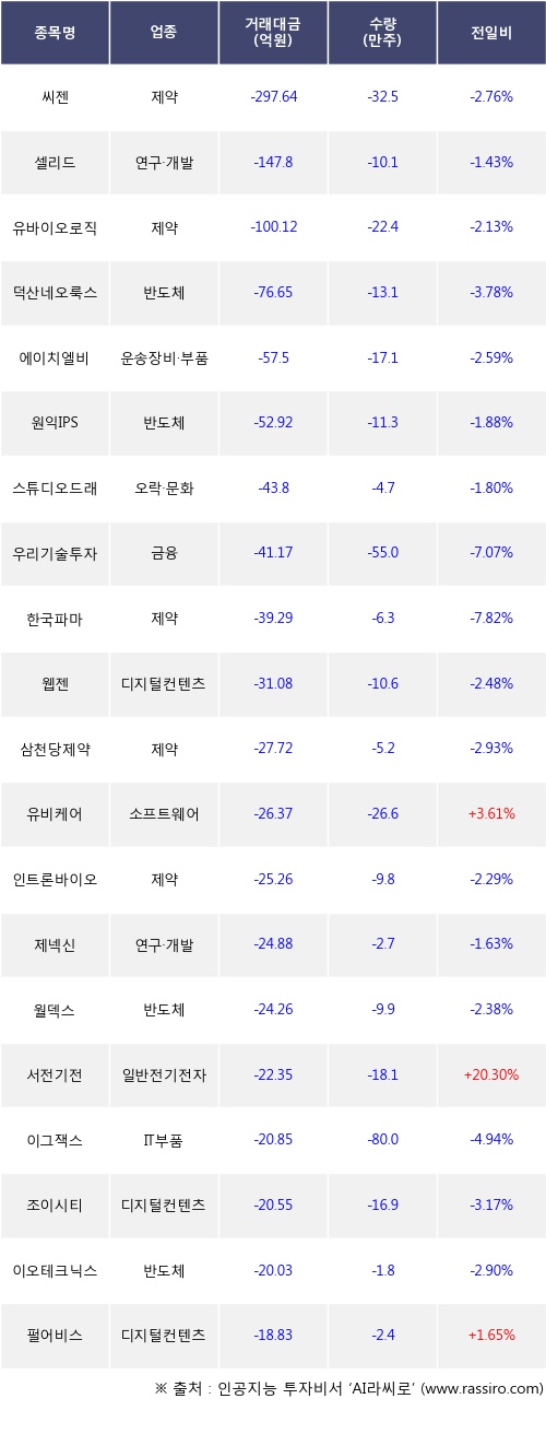 09일, 외국인 코스닥에서 씨젠(-2.76%), 셀리드(-1.43%) 등 순매도