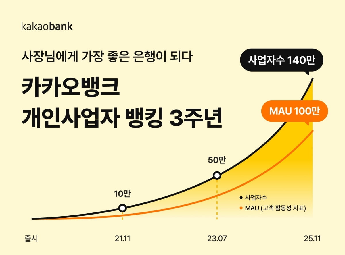 카뱅, 자영업자 사용 '쑥쑥'…개인사업자 MAU 100만 돌파