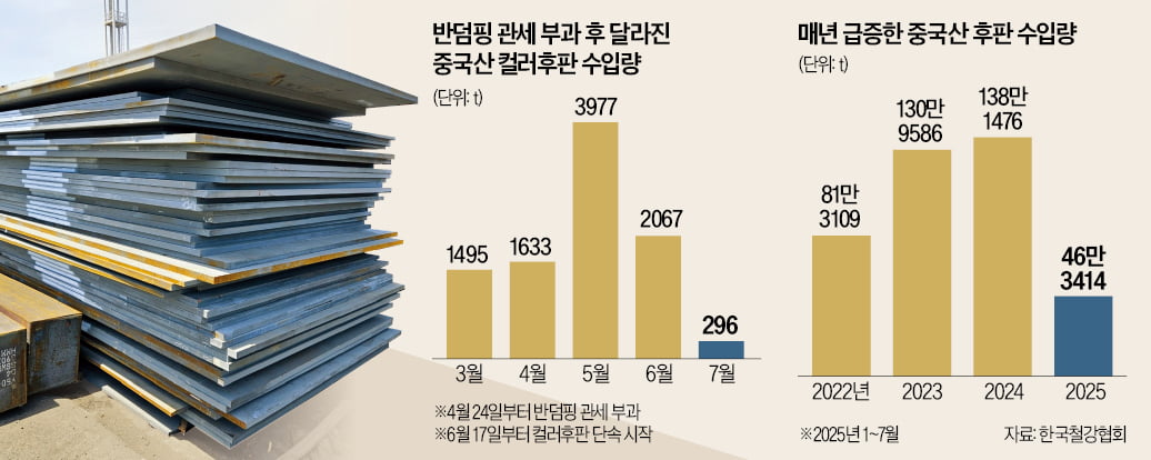 [단독] 페인트 벗기니 일반 후판…야적장엔 中 '가짜 컬러후판' 산더미