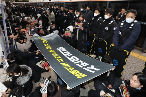 전장연 탑승시위에 지하철 4호선 혜화역 무정차 통과