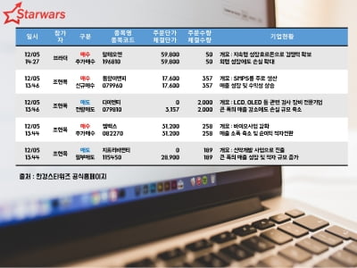 [12월 9일(월)] ◇ 신규상장 = IBKS제12호스팩(335870) ◇ 변경상장 = GMR머티리얼즈→글로스퍼랩스(상호변경) 한국정보통신(주식소각) ◇ 공모주청약 = 대신밸런스제8호기업인수목적(대신) 신테카바이오(KB) 유안타제6호기업인수목적(유안타) [12월 10일(화)] ◇ 신규상장 = 태웅로직스(124560) ◇ 공모주청약 = 대신밸런스제8호기업인수목적(대신) 신테카바이오(KB) 유안타제6호기업인수목적(유안타) [12월 ...